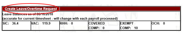 Note: The Time and Hours will automatically transfer from the Leave/Overtime Request to the Time Sheet when an Agency has opted to 'Auto Fill Leave Request'