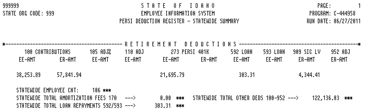 Purpose: This is a statewide summary report of all PERSI deductions.